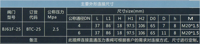 適用于公稱壓力為2.5MPa.公稱通徑為DN4和DN6.進口插焊連接、出口螺紋連接、閥體材料為鋼質的插焊連接直通壓力表閥。