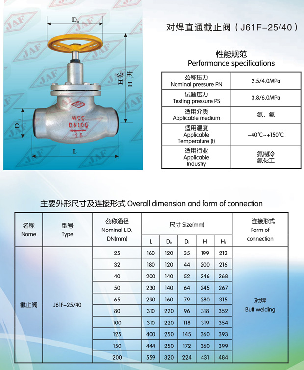 對(duì)焊直通截止閥J61F(B)-25(40)